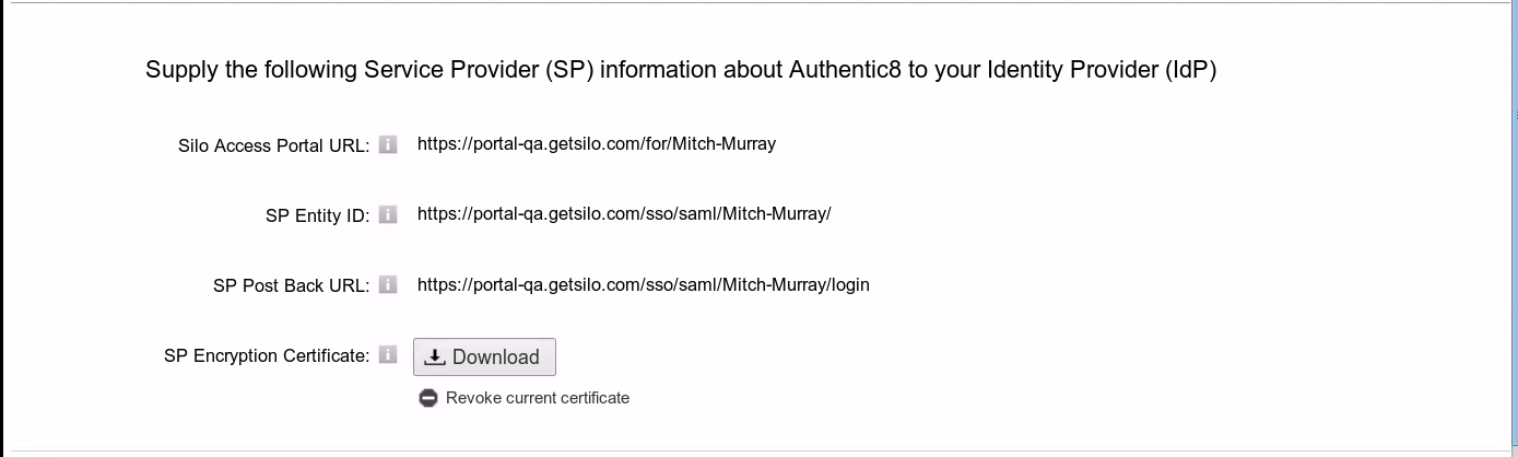 - Please refer to your Identity Provider's documentation for specific instructions with entering the required SP URL values
