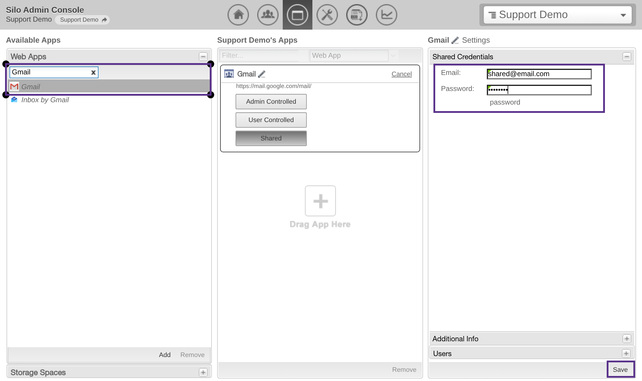 - Admin Controlled: only the Silo Admin has knowledge and control of the web credentials